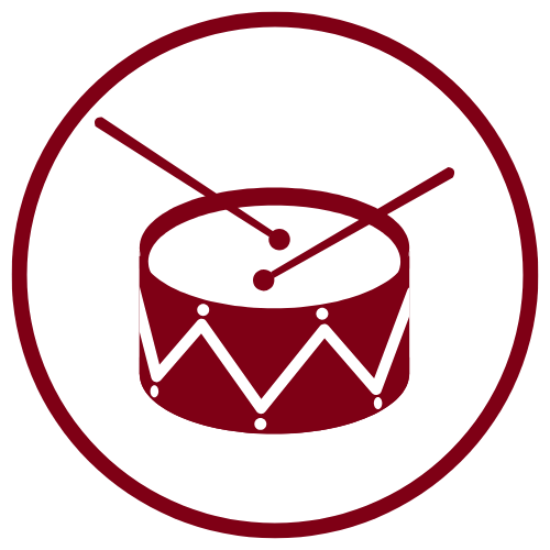 An icon of a drum with drumsticks inside a red circle with a diagonal line through it, indicating no drums or drum playing.