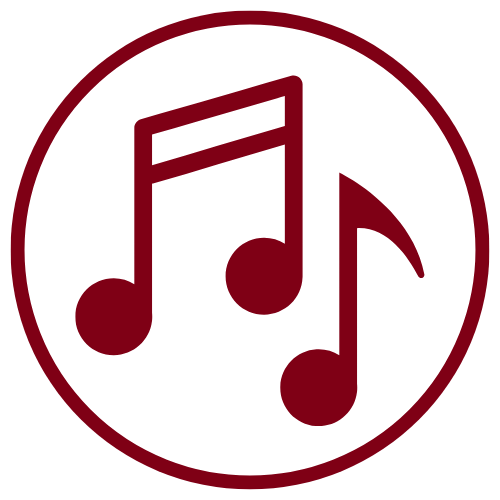 Icon of an open book with musical notes above it, inside a circle, representing music or singing.
